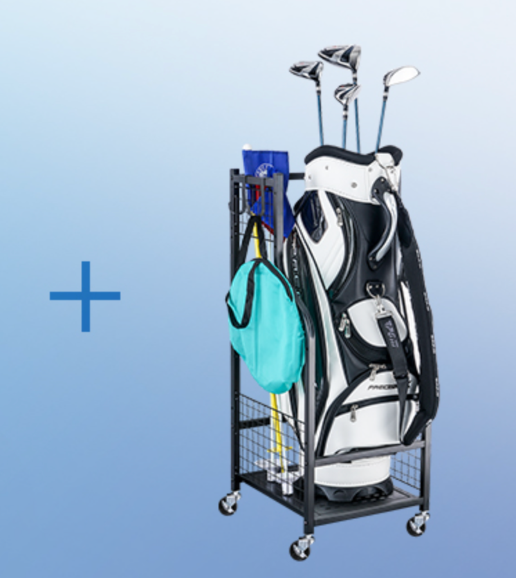 With 3 extra medium shelves, 1 golf club storage stand and 4 removable hooks. Organize and store all your golfing equipment in one spot.