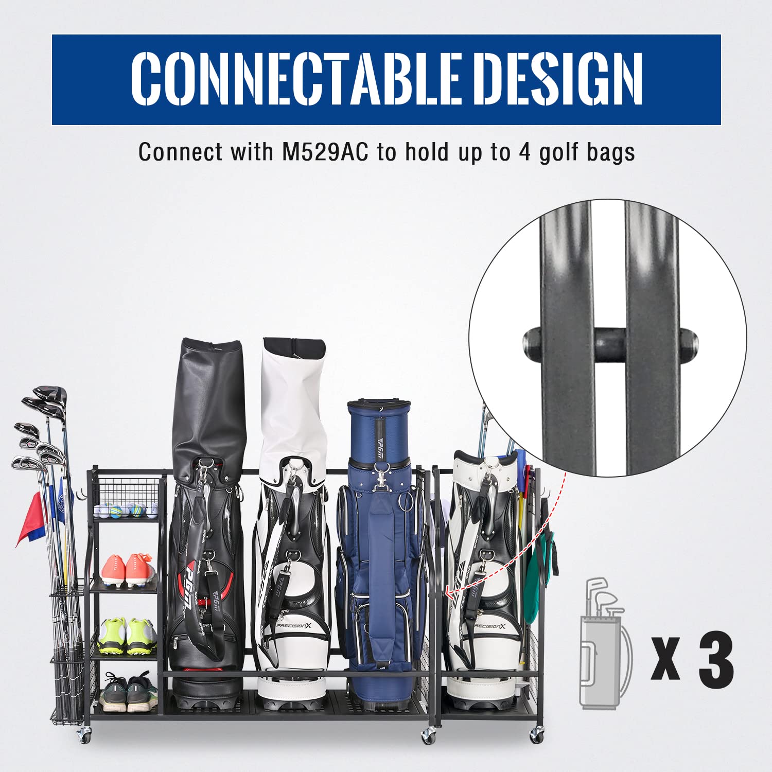 If you have more than 4 golf bags, you could connect with this golf bag storage stand with M529D to use. Then it can hold up to 4 golf bags.
