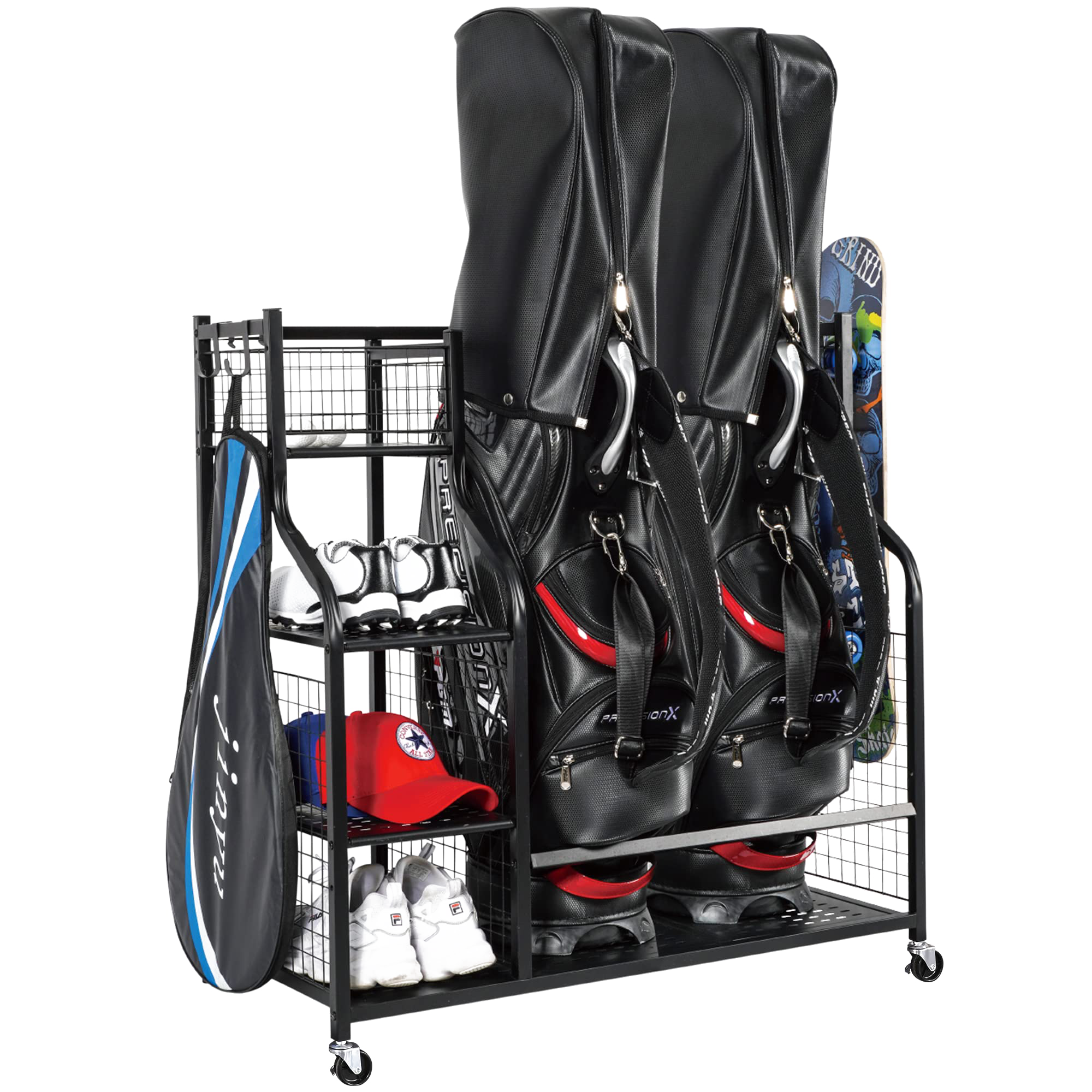 PLKOW Golf Bag Storage Garage Organizer, Fit for 2 Golf Bags and Golf Accessories