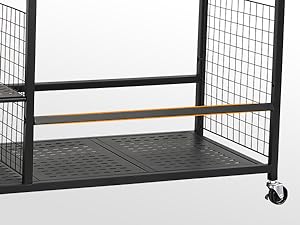 Soft edge design: The garage storage stand is designed with a soft edge to protect your golf bag from scratches. And the bottom of the dual golf bag storage stand is the hole board, which is more sturdy and durable than the net rack.
